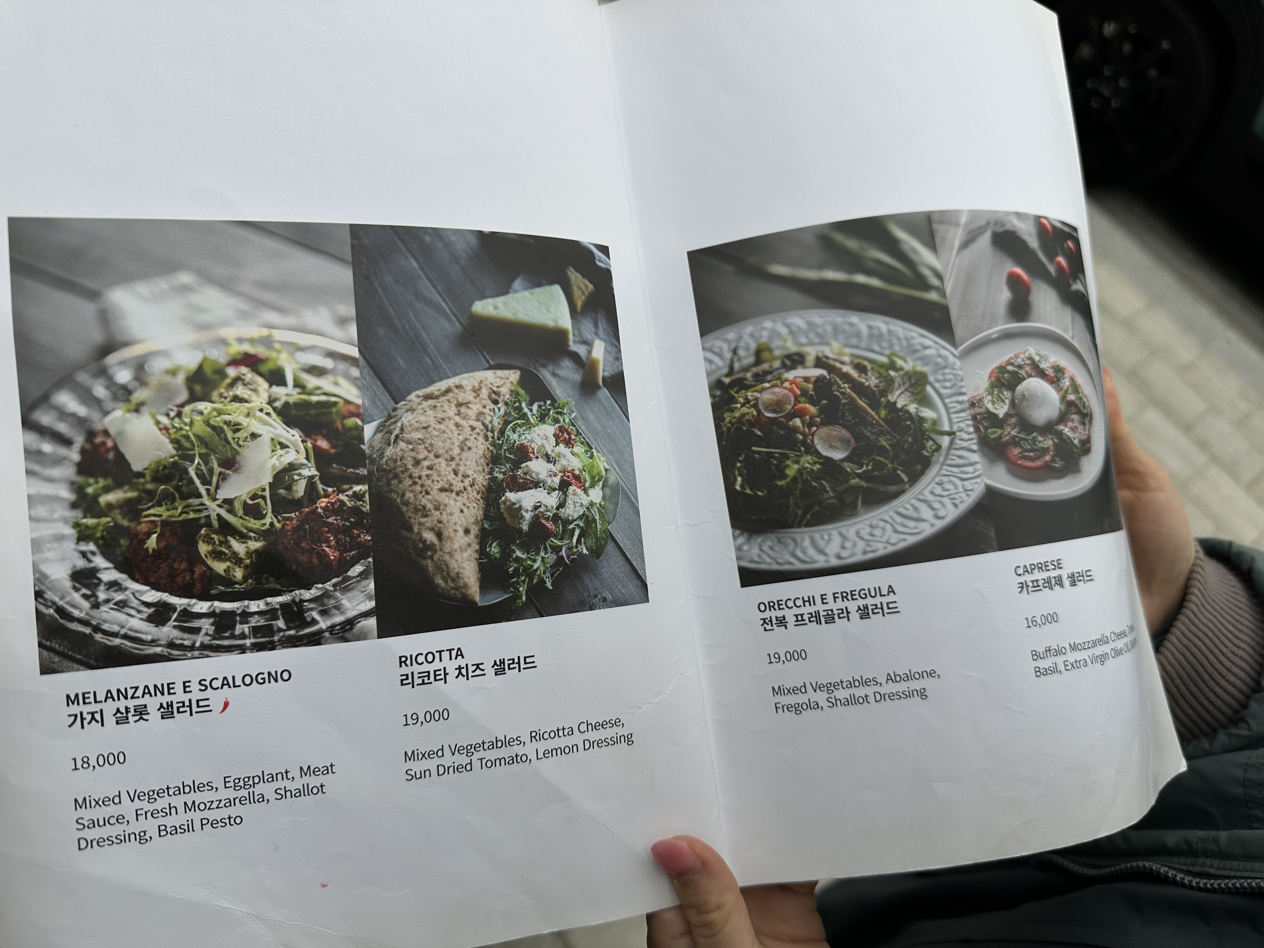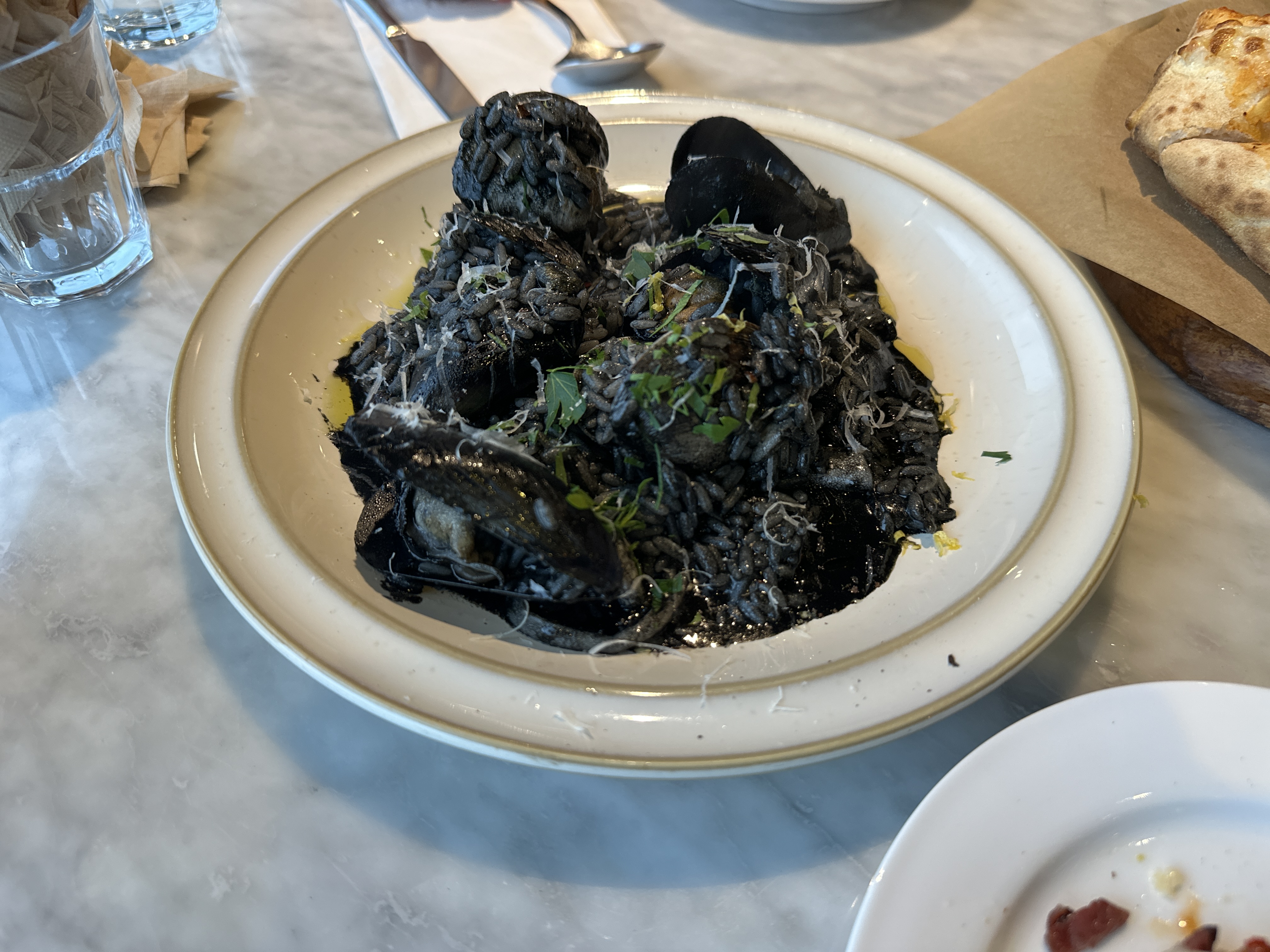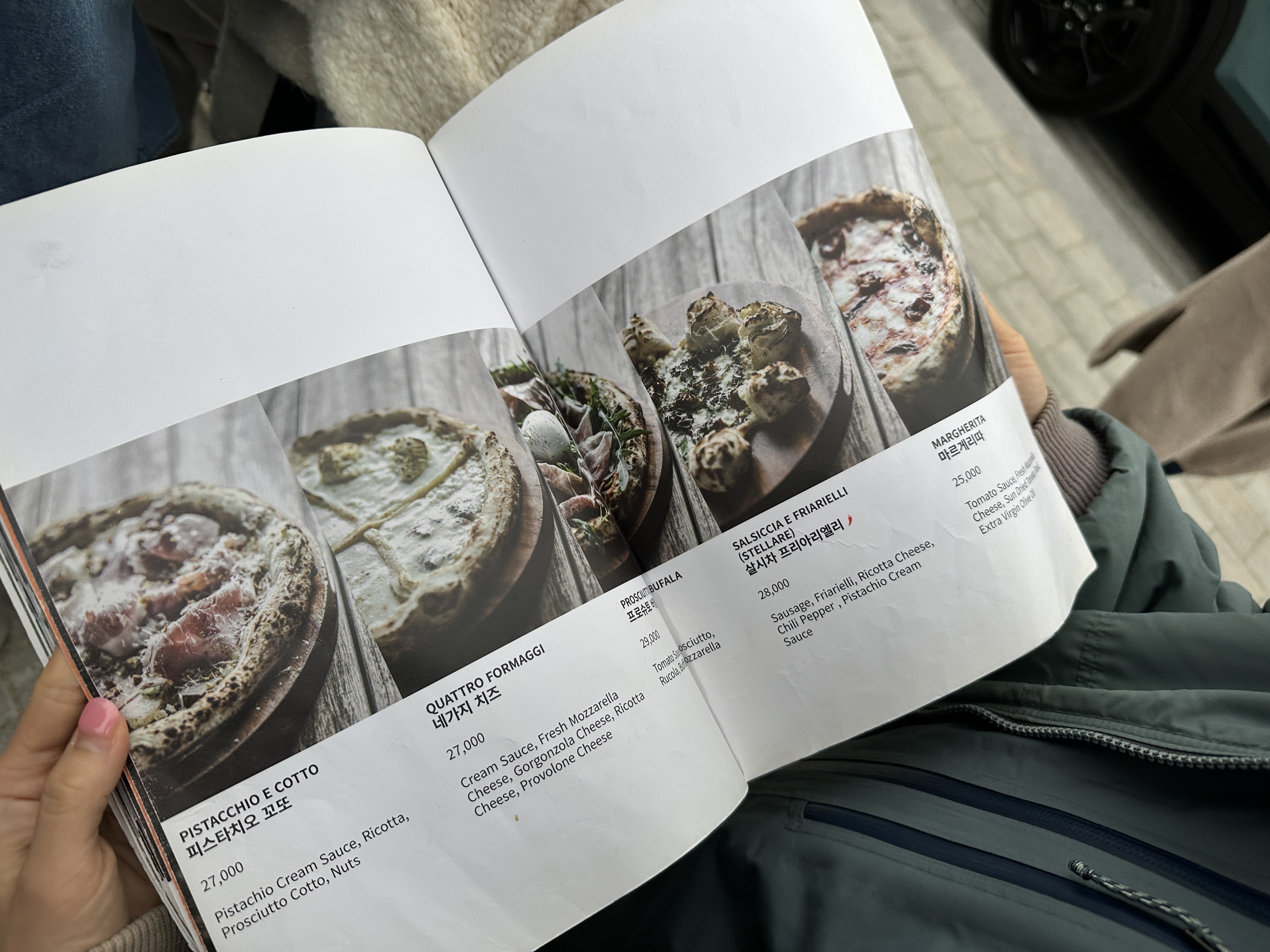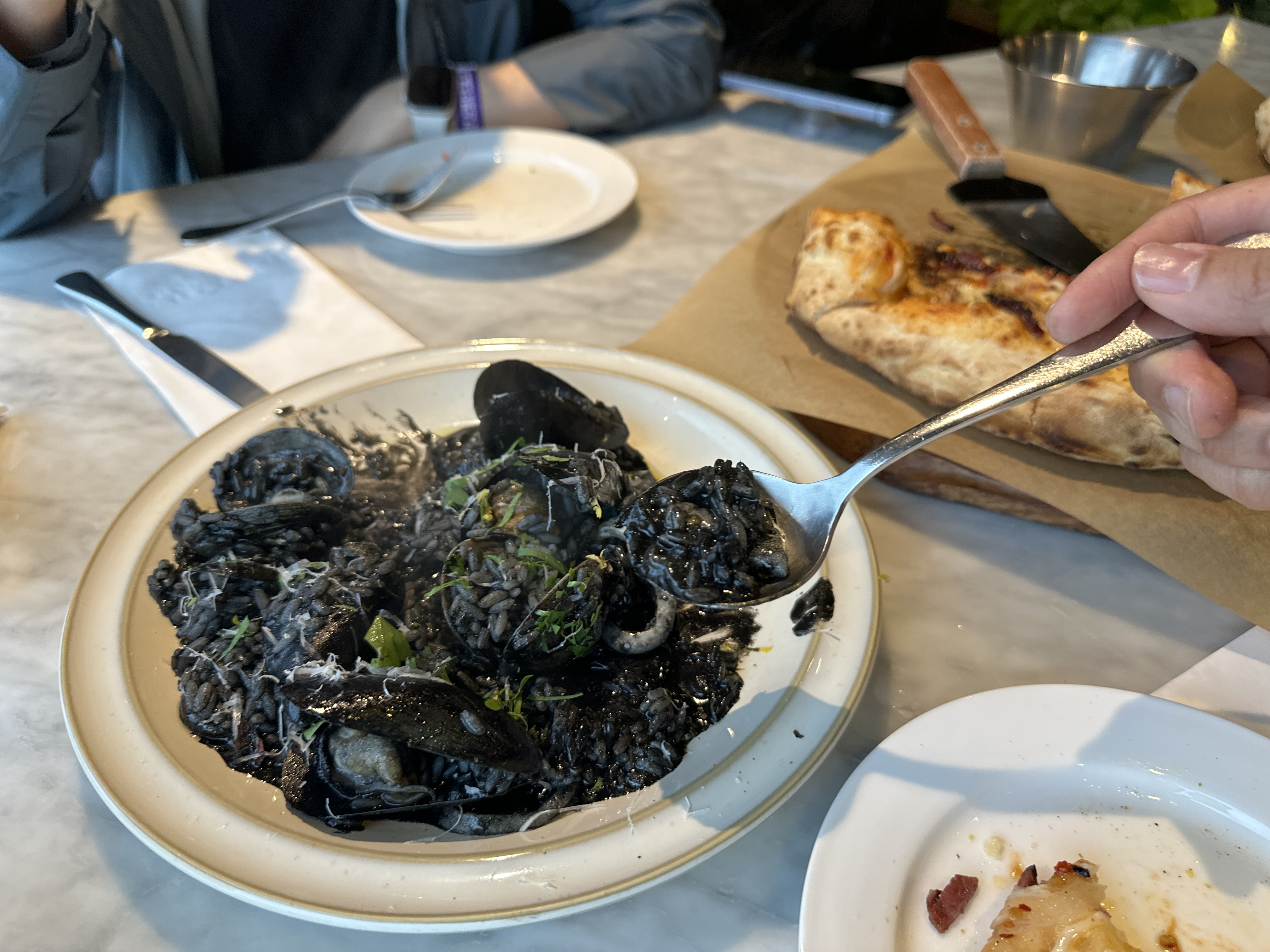 우리는 피스티치오 꼬또, 오징어먹물 리조또, 디아볼로 피자를 주문